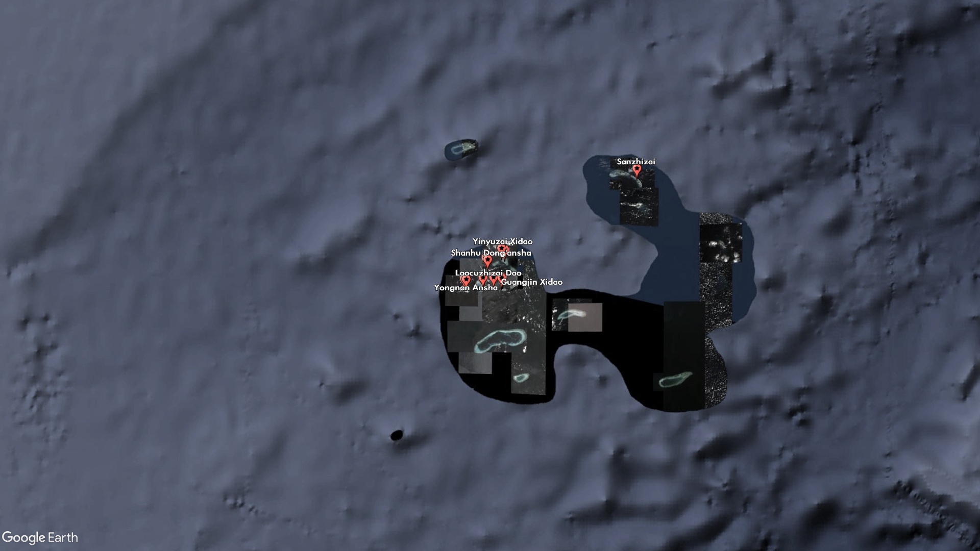One of the new features, Sanzhizai, is a sandbar that satellite imagery shows to be uninhabited and barely above water at all hours. It is wedged between Middle Island and South Island, which are also unoccupied and claimed by China. China occupies all the inhabited features nearby, including North Island, which houses a small military outpost, and Tree Island, home to a larger port and military base.